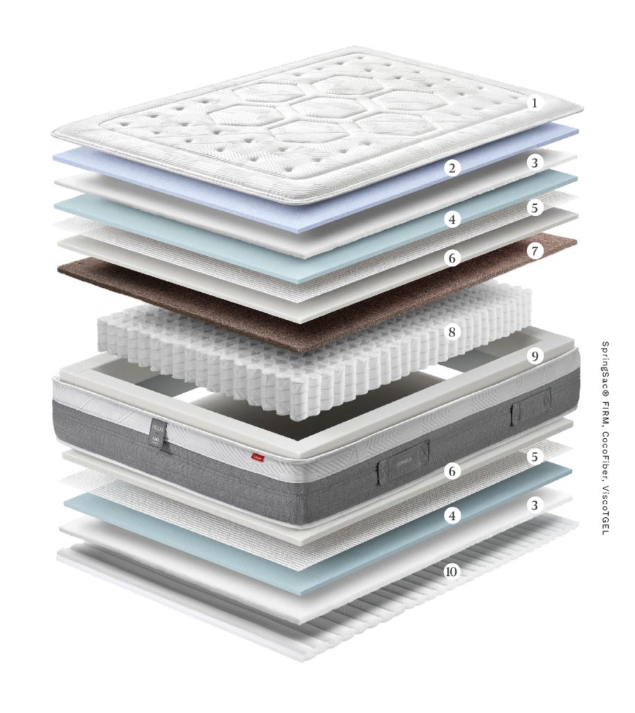 Grâce à la mousse Visco’GEL, il offre un accueil confortable en réduisant les points de pression. La présence de CocoFiber et de la technologie SpringSac® Firm renforce le soutien dorsal et garantit une excellente longévité.