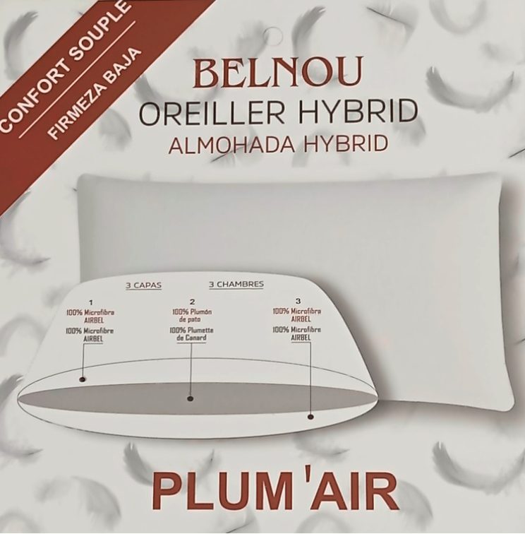 Oreiller Belnou Plum’Air Hybrid – Confort Souple 💤✨